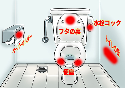 対策食品を取り扱う作業場内が、そしてノロウイルス汚染リスクの高いトイレなどの設備について、日々の清掃・消毒で施設内にウイルスが残存したり拡がることを抑えられているか、検査で確認しましょう。